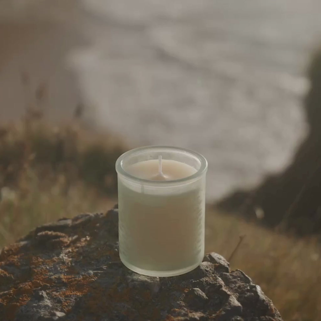 Housed in frosted light blue glass, inspired by sea glass treasures, our Sea Mist Beachcombing glass candle evokes the beauty of the shoreline and coastal calm.