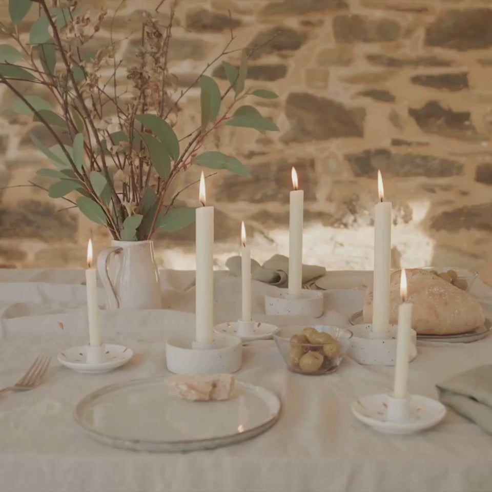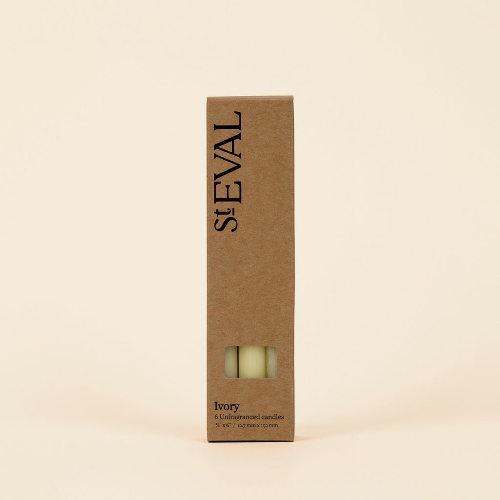 Slender and elegant, our ½“ x 6" Ivory Candles are the quiet achievers of the candle world. Perfect for lining a dinner table or gracing a mantlepiece, these hand-finished candles bring a soft, unadulterated glow wherever they’re placed.