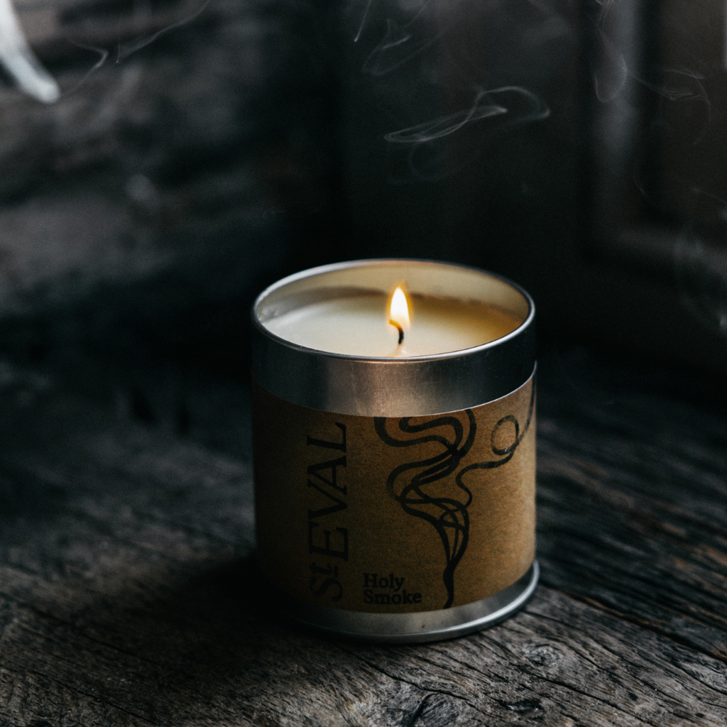Like a whisper from ancient forests, our Holy Smoke Tin Candle wraps the air in a warm, grounding embrace.