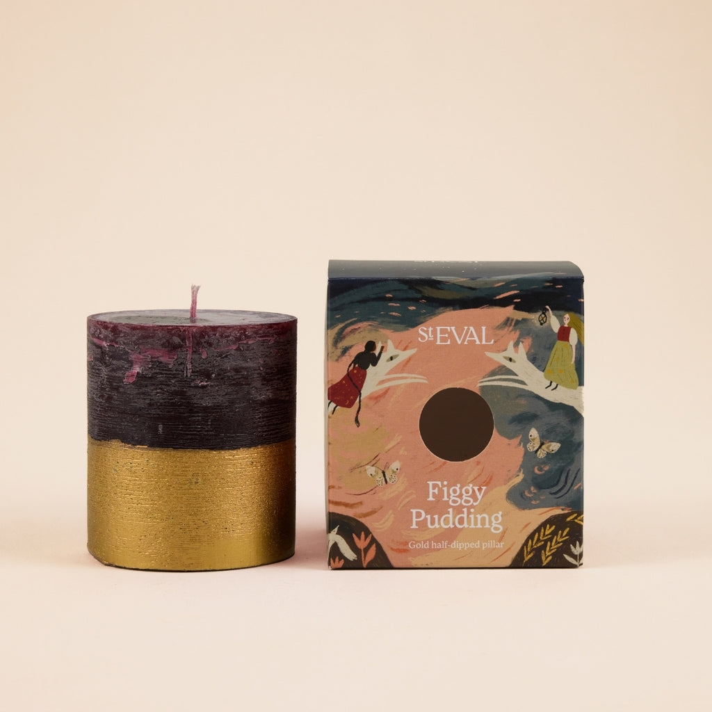 Step into a world of festive wonder with our Figgy Pudding Christmas Gold-Dipped Pillar.