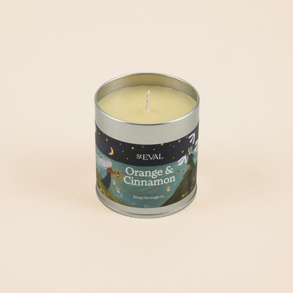 Step into a world of festive wonder with our Orange & Cinnamon Scented Tin Candle.