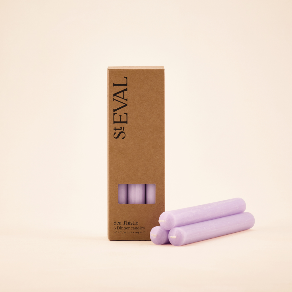 Bring the wild in with our Sea Thistle 8” Dinner Candles. A wild lilac, where silver spines shimmer in the sun and blooms rise from warm dunes and pebbled shores.