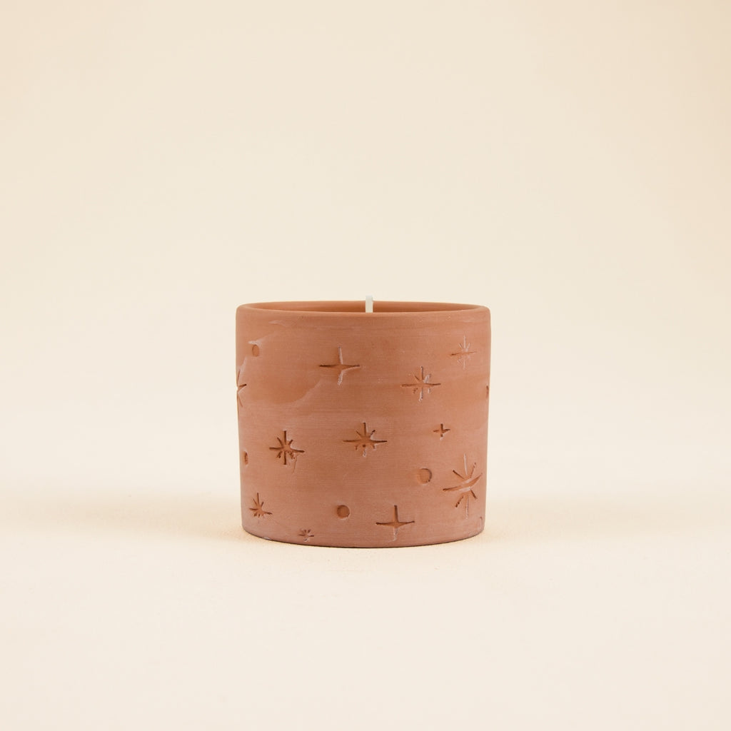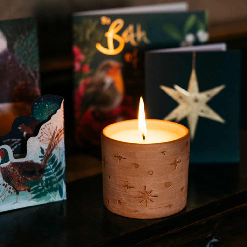 Etched with stars, shaped by the land. These pots glimmer with festive fragrance, like whispers from constellations dancing above the Cornish coast.